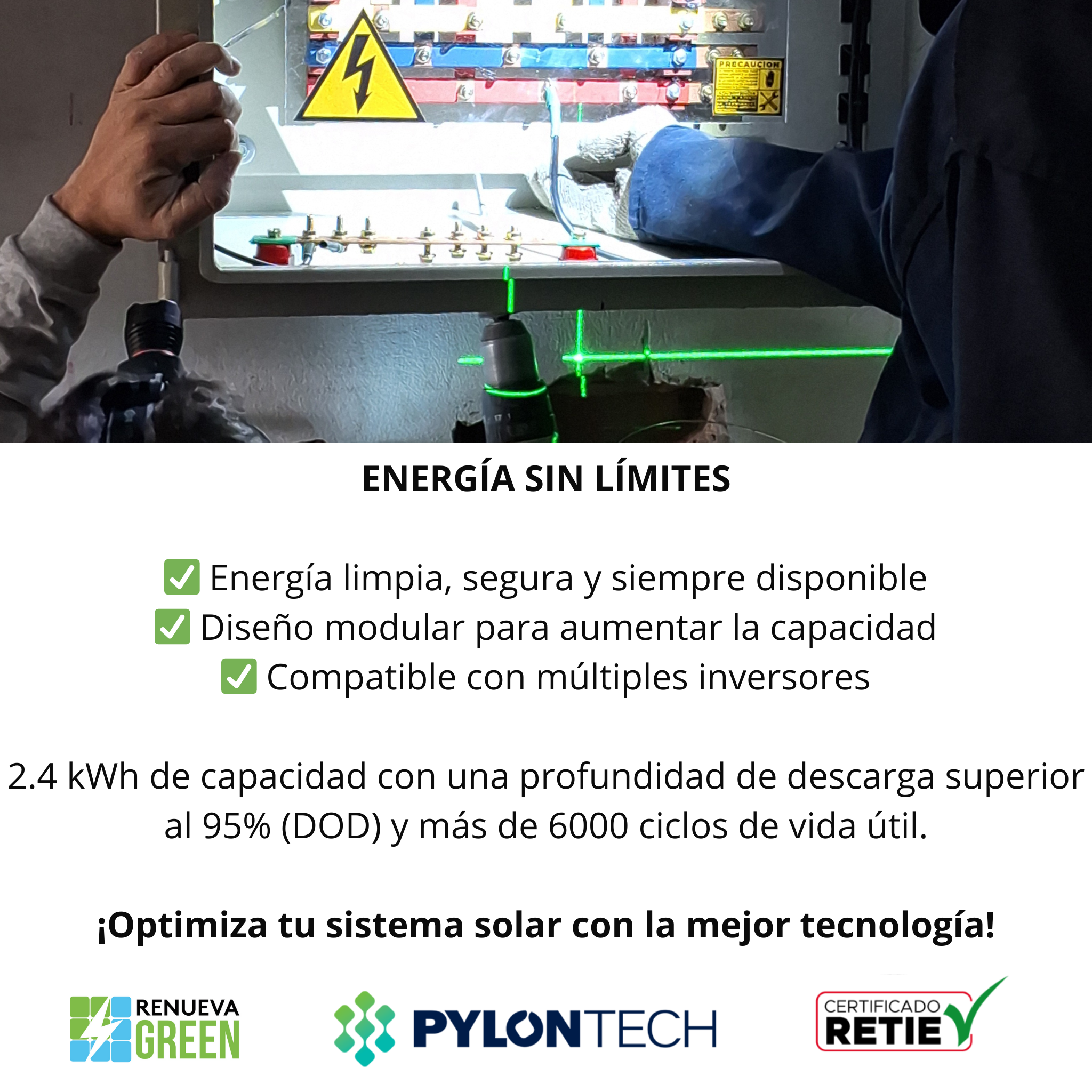 Optimiza tu energía con esta batería de 2.4 kWh y 6000 ciclos, con más del 95% de descarga. Con más de 10 años de vida útil, es perfecta para proyectos de energía solar a tú medida. Su comunicación CAN y RS485 asegura una integración fácil. Con un peso de 24 kg y medidas de 442x410x89 mm, es compacta y poderosa. ¡Incluye cable de conexión paralelo para una instalación rápida!