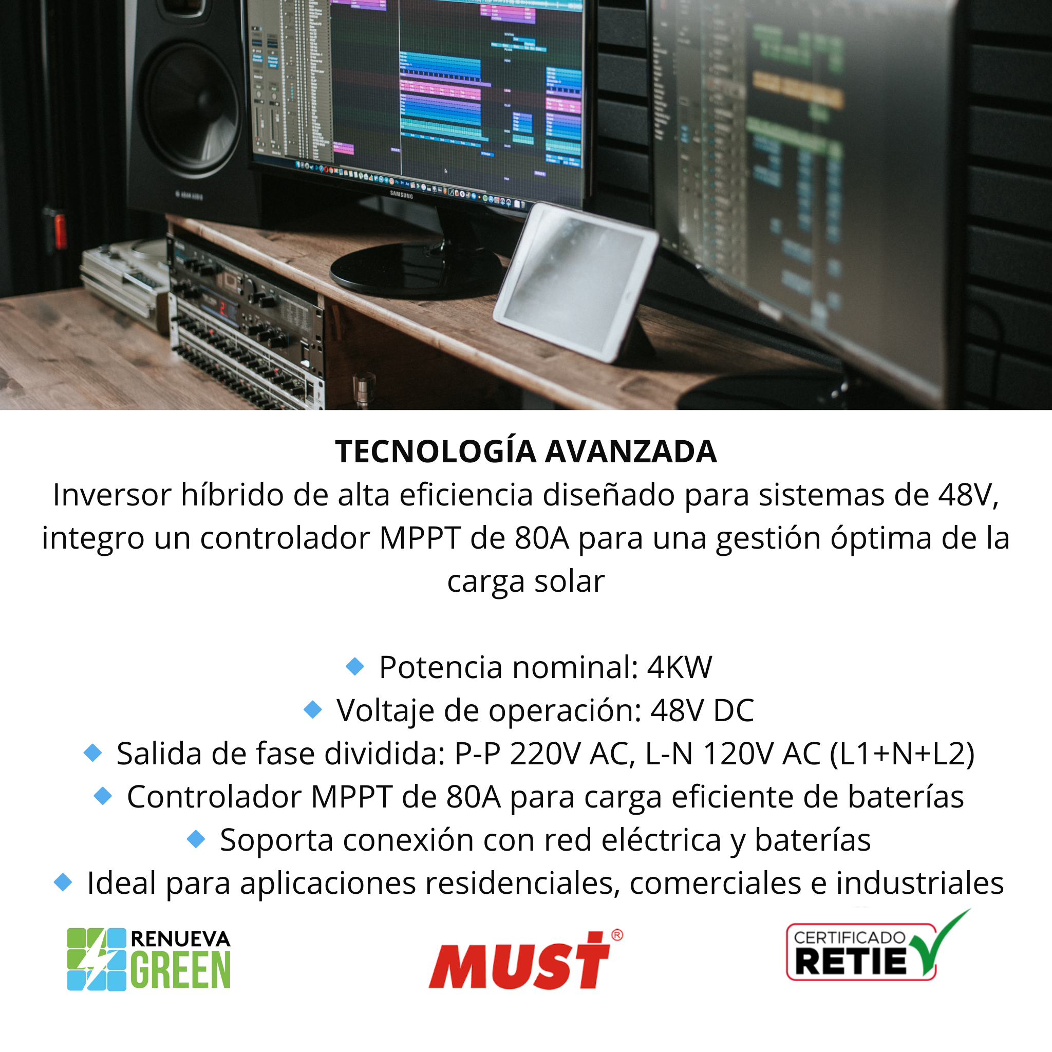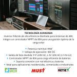 Controlador MPPT 80A. Marca MUST 4KW/48v salida de 2 lineas P-P 220VAC, L-N 120VAC L1+N+L2.
